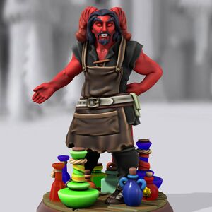 Revision as of 00:20, 11 July 2021 by Yohgren (talk | contribs) (Created page with "thumb|Ganaleh portrait via [https://heroforge.com Hero Forge]. '''''Ganaleh''''' is a [https://www.dndbeyond.com/races/tiefling Tiefling] potter, a...")